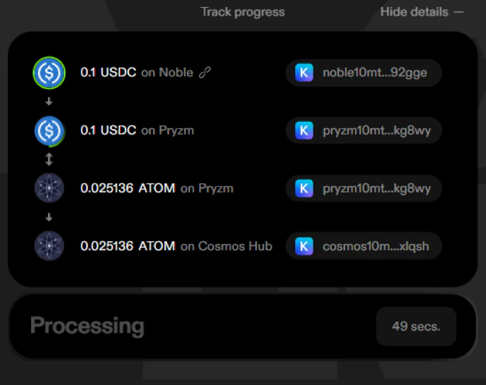 In the background, the API provides automatic DEX aggregation, bridge routing, denom recommendation, and relaying for all actions.
